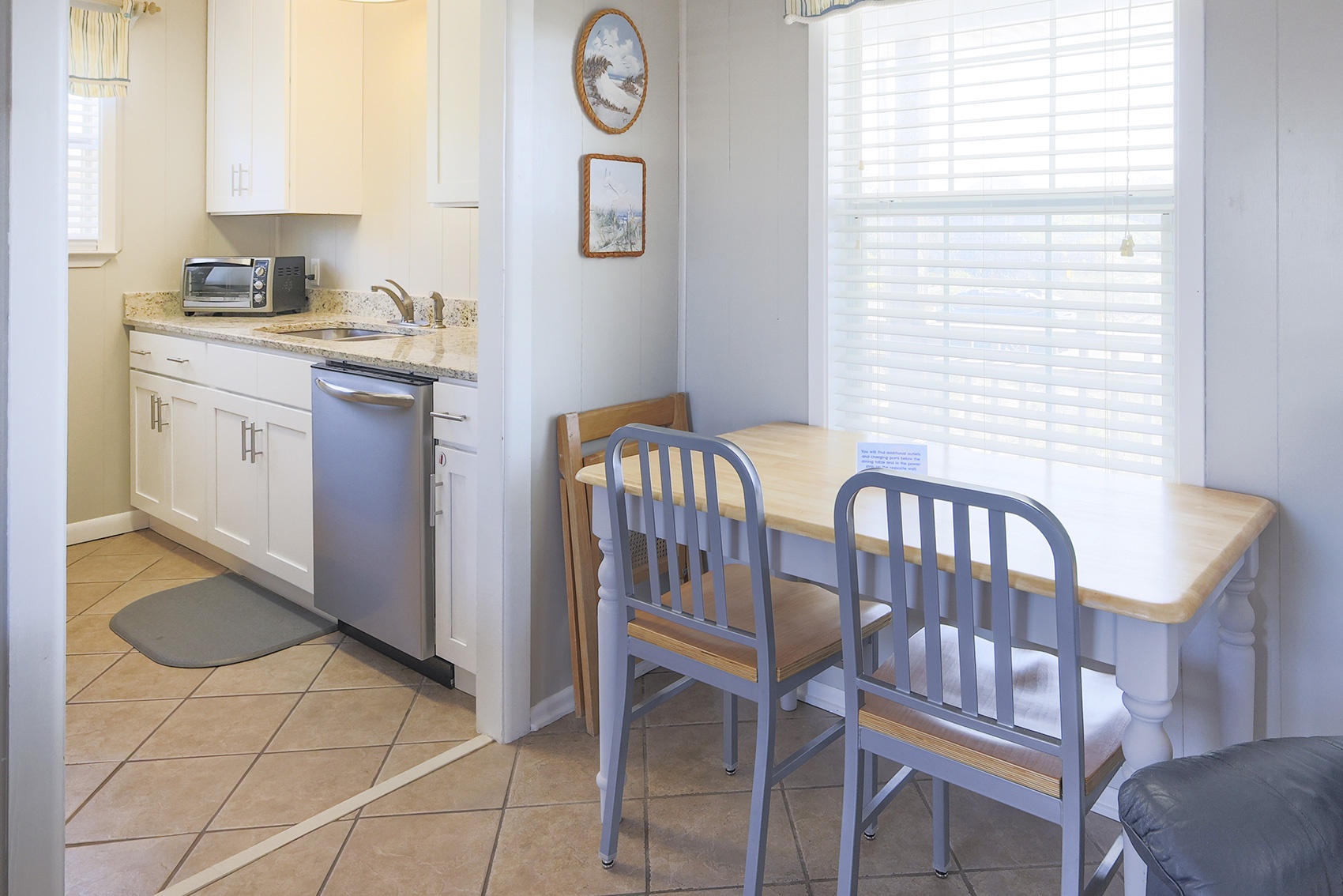 A quaint dining area with seating for two