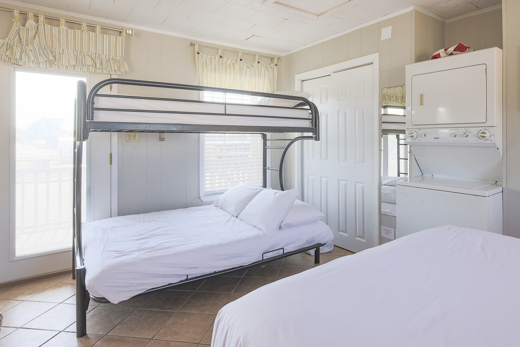 Primary Bedroom: Queen-size bed + twin-over-full bunk bed